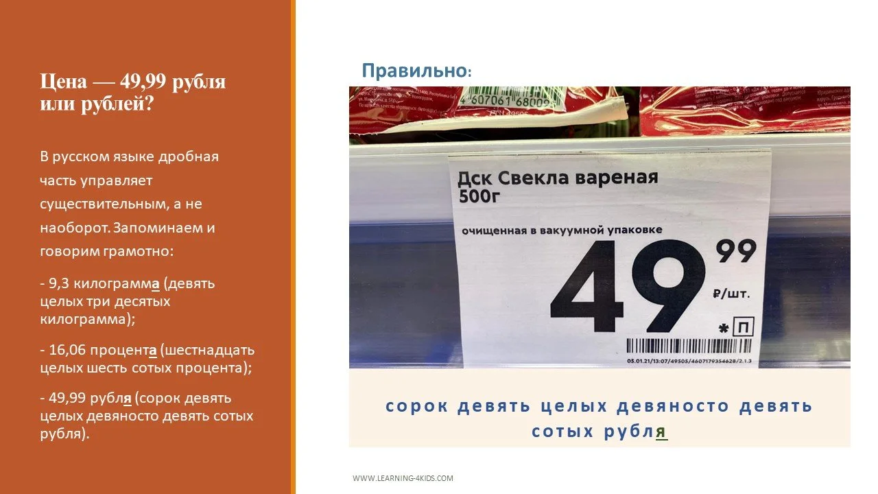 Цена — 49,99 рубля или рублей?