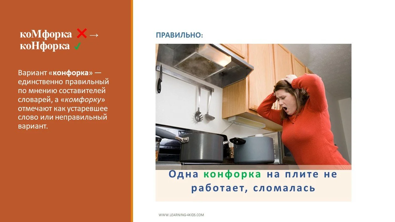 коМфорка ❌→ коНфорка ✔ (от голландского «komfoor», а не от «комфорта»)