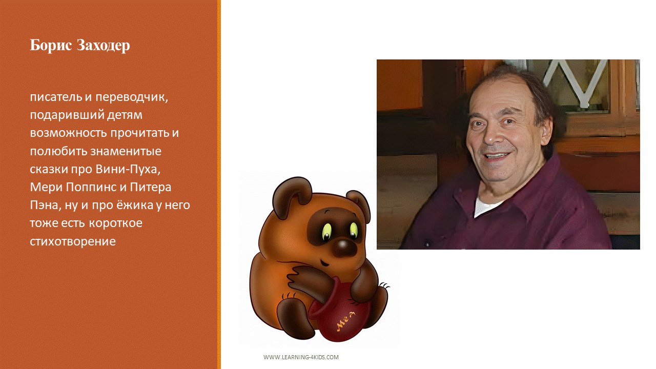Совет: Короткое четверостишие Бориса Заходера отлично подойдёт малышам до 4 лет. А стихи Генриха Сапгира — для детей постарше, от 4 лет.