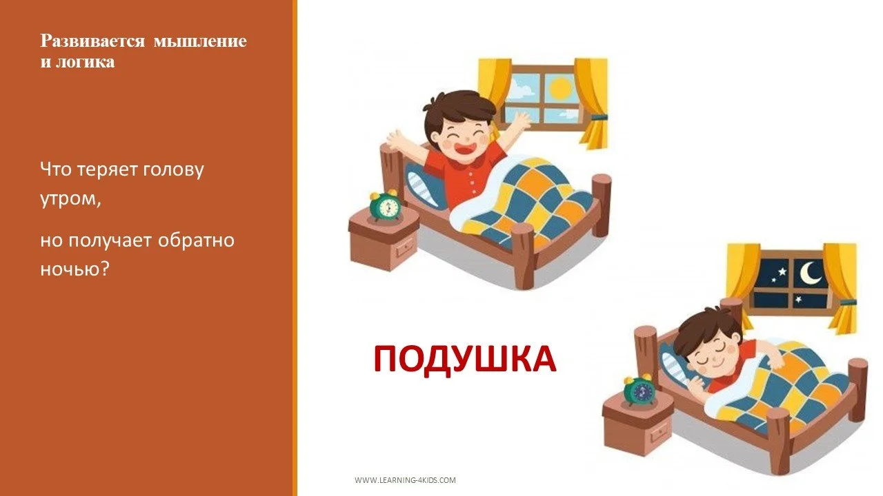 О чем: рифма подсказывает неверный ответ, что учит ребенка мыслить, а не поддаваться на уловку.